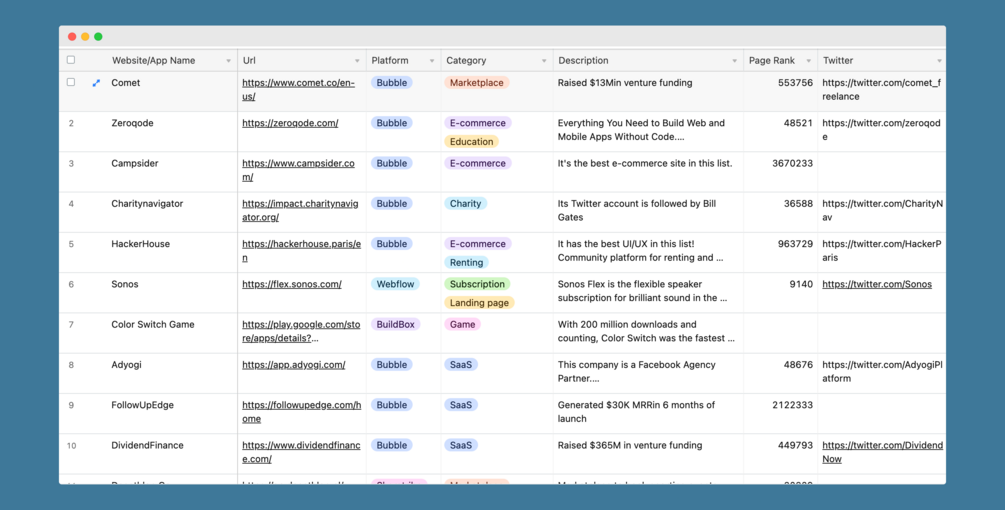 • A live database of 69+ hand-curated profitable apps built with no code!